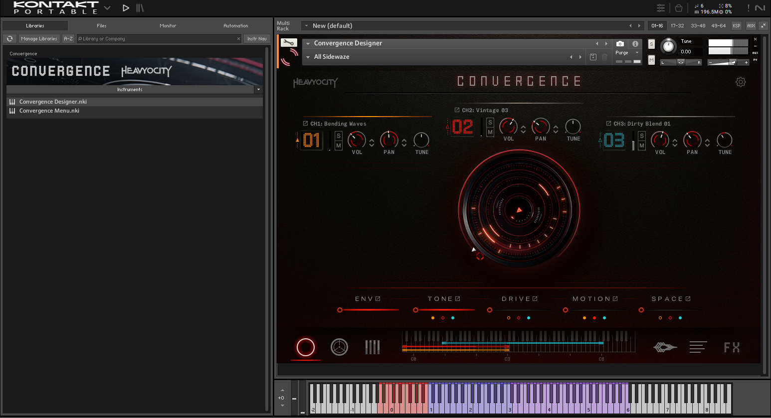 CONVERGENCE 提供超过 130 种模拟音源,以及 480 多个预设